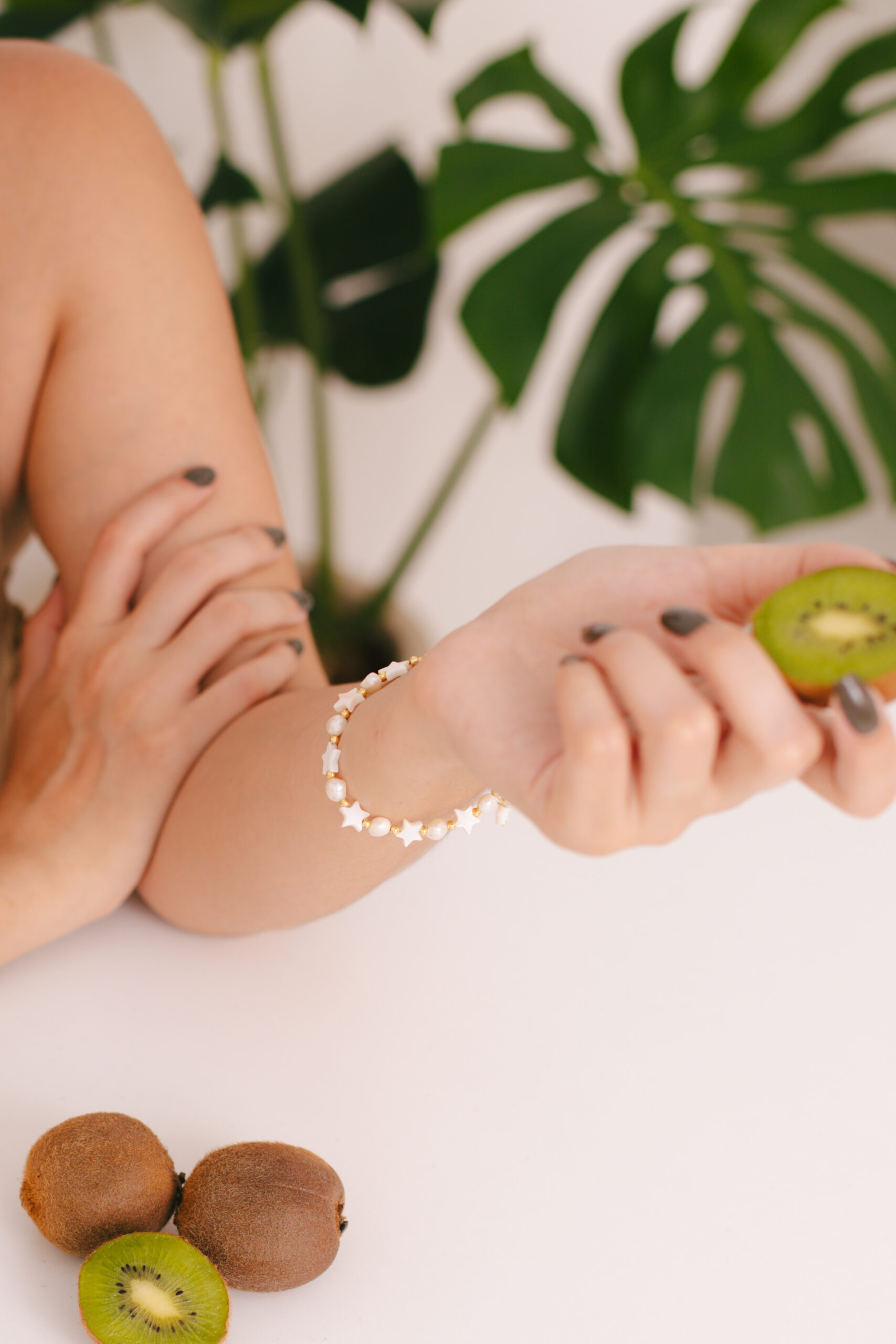 Com acessórios autênticos e praianos, com pedras naturais e muita inspiração. Criamos com base no briefing construído com a cliente, num mix de fotos no estúdio e fotos ao ar livre, sempre pensando em um dia quente de verão.